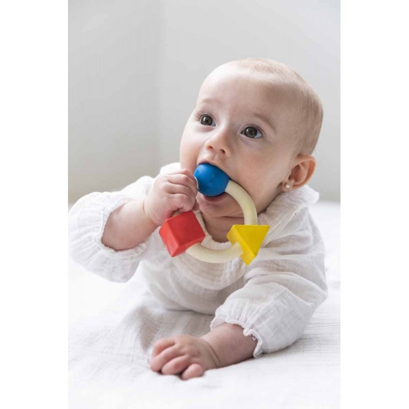 Dieser Beissring wurde sorgfältig aus 100% Naturkautschuk von malaysischen Hevea-Bäumen gefertigt und von Hand mit sicheren, natürlichen Lebensmittelfarbstoffen bemalt. Ohne Löcher, damit keine Feuchtigkeit und Bakterien sich im Innern sammeln können und dadurch absolut sicher für kleine Hände und Münder.